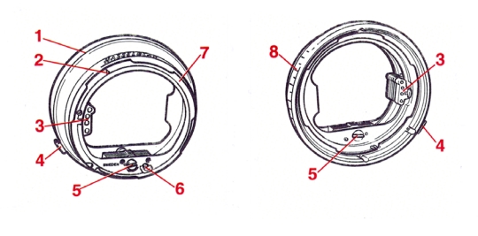 참고 : 확장 튜브 8이 결합되어 있지만 렌즈가 부착되지 않은 500 시리즈 카메라의 셔터를 개방하고 와인딩하고 나면 렌즈나 다른 확장 튜브가 부착되지 않는 현상이 발생할 수 있음. 확장 튜브 8을 분리하고 다시 장착한 다음, 평소와 같이 다른 장비를 부착함