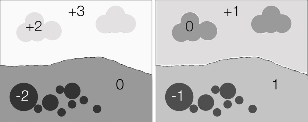 우리는 모든 것을 색조 범위의 중간에 있는 것으로 인식한다. 사실, 인간의 시각은 진정한 광도를 볼 수 없으며, 우리는 같은 것을 보기 위해 더 높은 톤을 압축하는 경향이 있다.