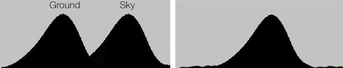노출 설정을 할 때, 지면과 하늘을 히스토그램의 중간 톤 쪽으로 이동하려고 노력한다. 이것은 매우 중요하며, 반드시 유념해야 할 말이다. "노출을 설정할 때, 지면과 하늘 모두를 히스토그램의 중간 톤 쪽으로 이동시켜야 한다."
