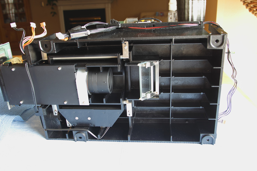 10) 광학 어셈블리를 제거한다. 이 시점에서 검은색 소재(검은색 플록 모드)를 부착하는 것을 고려할 수 있다. John Acton은 광학 센서 근처의 산란광을 줄이기 위해 이를 제안했다.