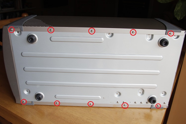 3) 바닥에 있는 나사 8개를 제거하고 금속 하우징을 밀어서 분리한다.