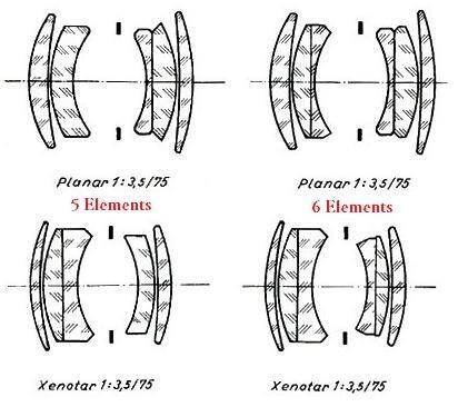 렌즈의 역사가 가장 복잡한 것은 롤라이플렉스 3.5F 모델이다. 3.5F 모델은 1958년 12월 출시 당시부터 3.5E에서 채택되었던 75mm f/3.5 Carl Zeiss Planar 렌즈와 75mm f/3.5 Schneider Xenotar 중에 선택할 수 있었다. 두 종류의 렌즈 중 사람들이 더 선호하는 쪽은 Planar 였으므로, 이 시기에 생산된 3.5F 중에 Xenotar는 쉽사리 찾아볼 수 없다. 이와 같은 상황은 1960년 11월, 시리얼 번호 2,250,000으로 시작하는 재설계된 3.5F(K.4F)가 도착할 때까지 지속되었다. K.4F 모델부터는 5요소 Planar 및 Xenotar 는 새로운 6요소 렌즈 버전으로 대체되었다(생산 초기 일부 카메라에서는 5요소 Xenotar도 있음). 6요소 렌즈로 전환하게 된 이유는 특히 주변 영역의 선명도와 컨트라스트를 개선하기 위함이었다. 어쨌든 이번에도 Planar가 더 일반적이었으며, 두 종류의 6요소 가우스 렌즈는 Xenotar가 철수하는 1964년(정확하지는 않음)까지 3.5F에 장착되었다. 그 후 약 9년 동안 3.5F에는 6요소 Planar만 장착되었다. 그러나 Xenotar의 생명이 다 한 것은 아니었다. 1973년, 3.5F 시리얼 번호 2,851,000부터 6요소 Planar는 6요소 Xenotar로 대체되었다.