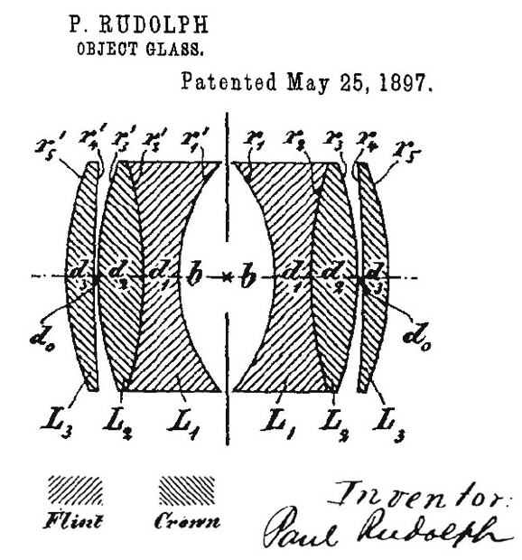 제2차 세계대전이 한창 진행되던 중, 후면 이중 렌즈를 구성하는 두 요소를 분리하고 오목렌즈를 중앙 조리개 부분에 오목한 반달모양으로 구부림으로써 6요소 렌즈의 후면 요소를 제거할 수 있다는 사실을 발견함으로써 Rudolph의 처음 Planar 렌즈는 Biometar와 연결고리를 갖게 된다. 이 같은 새로운 구조의 렌즈는 5요소 가우스 렌즈로 알려지게 되었고, Zeiss Biometar가 그 중 하나이다.