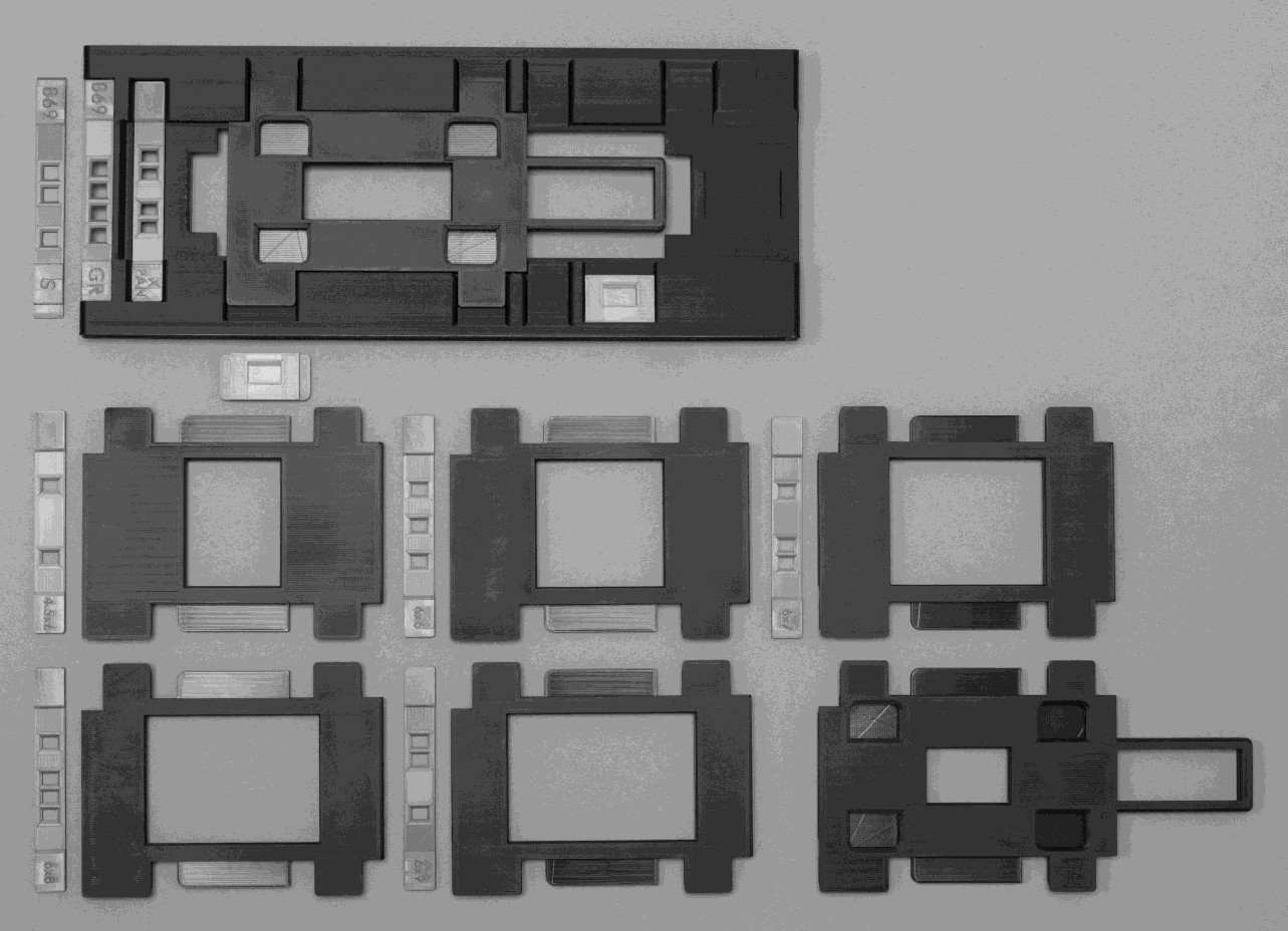 10. 특수 무유리 하단 마스크와 안티뉴튼링 상단 유리 스트립을 이용한 6X12 필름 스캔 : 니콘 스캐너는 6X12 필름을 한 번에 처리할 수 없으므로, 두 번으로 나눠서 스캔한 다음 포토샵 등에서 하나로 합쳐야 한다. 홀더 코딩 스트립은 FH-869S를 결합한다. 포맷 코딩 스트립은 필요하지 않다.