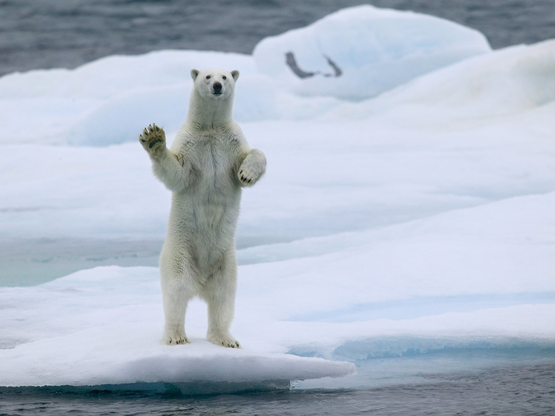 하지만 영원한 아름다움에 대한 느낌은 거짓이다. 지구 온난화는 극지방을 위협하고 있다. 지구 온난화로 극지방의 빙하가 녹고 있으며, 이번 세기 안에 북극해의 여름에는 얼음이 사라질 것이다. 극지방 환경에 맞춰 진화한 북극곰과 다른 동물의 미래는 암울해 보인다. 석유, 가스, 광물과 같은 자원의 파괴적인 착취는 북극의 미래를 더욱 불확실하게 만든다. 이처럼 절박한 상황과 전망속에서 나의 사진은 원시 자연을 담아내는 것에서, 인간이 극지방 환경에 미치는 영향을 묘사하는 것으로 바뀌게 되었다.