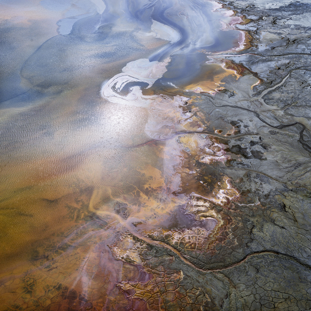 물은 단순히 수소 원자 두 개와 산소 한 개로 이루어진 분자일 뿐만 아니라, 다른 물질을 용해하고 운반하는 매개체이다. 물은 더 높은 고도에서 낮은 위치로 미사를 운반한다. 강이 바다에 가까워질 수록 평야지대에 도달하여 속도가 느려지면, 습지에 필요한 물을 공급하며 강이 마침내 바다에서 짜릿한 키스를 받기 전에 해안을 따라 웅장한 삼각주로 변하는 경우가 많다. 아이슬란드 남부 해안의 삼각주는 거대하며, 특히 위에서 내려다 보았을 때 특히 흥미롭다. 땅이 거의 완전히 평평하기 때문에 중력의 영향이 거의 0으로 줄어든다. 따라서 물은 온갖 방향으로 흘러 매우 복잡한 흐름 패턴이 만들어진다. 느리게 흐르는 물에 화산 토양에서 추출한 미사와 산화철의 함량은 강을 따라 다채로운 모래톱으로 침전된다. 위에서 관찰하면 강의 지류는 프랙탈처럼 보이고 심지어 인간의 혈관처럼 보이기도 한다.