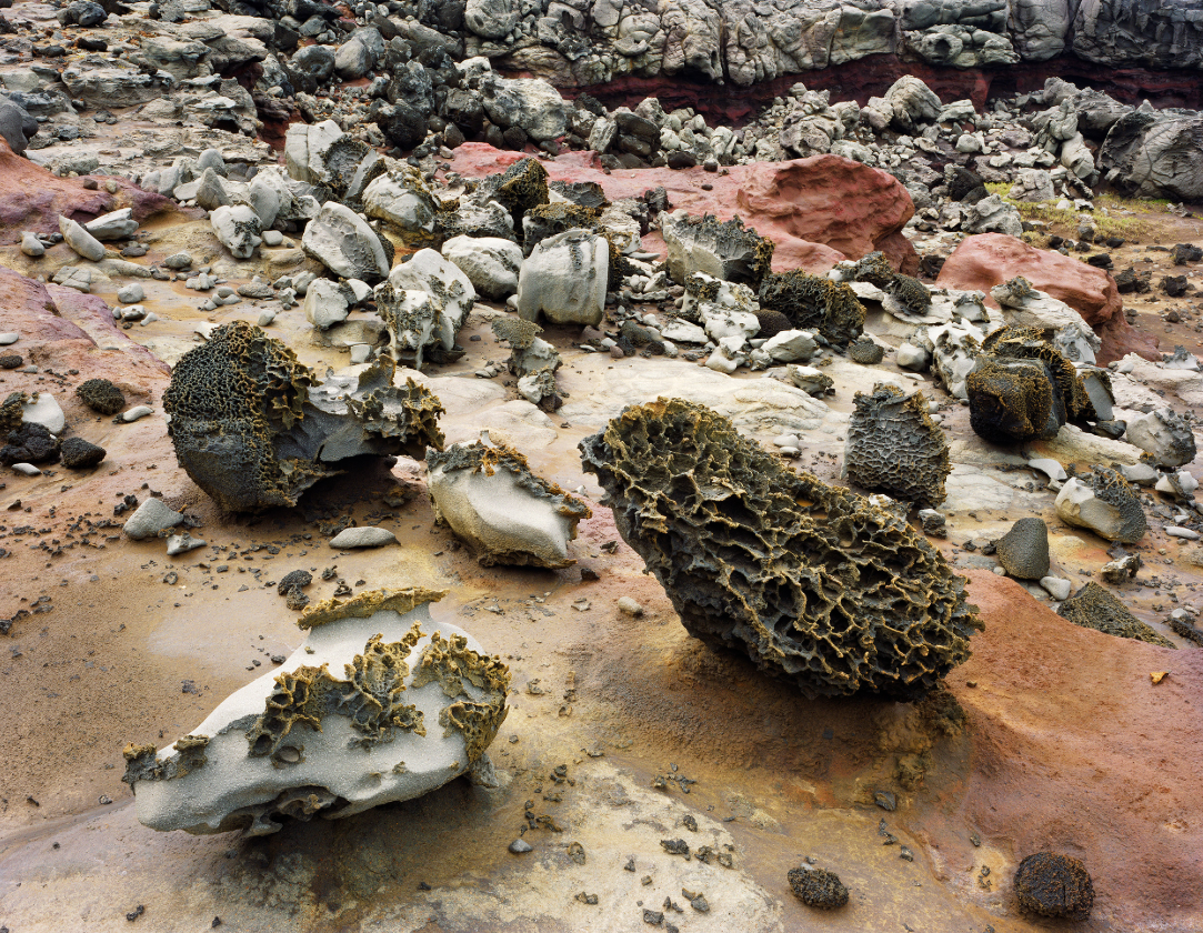 폴의 사진 속 모든 영역은 동등하게 중요합니다. 풍경 사진 속 광학적 민주주의(Optical democracy). 대부분 평면적인 빛은 하이라이트나 섀도우가 우리의 시선을 바로 사로잡지 않도록 한다. 피사체에는 대비가 있을지 몰라도, 빛에는 그렇지 않다. 빛은 그저… 있는 그대로이다. 폴은 대형 시트 필름, 긴 노출 시간, 작은 조리개를 사용하여 무한한 피사계 심도를 표현하고, 초점은 이미지의 모든 곳에서 선명하다.